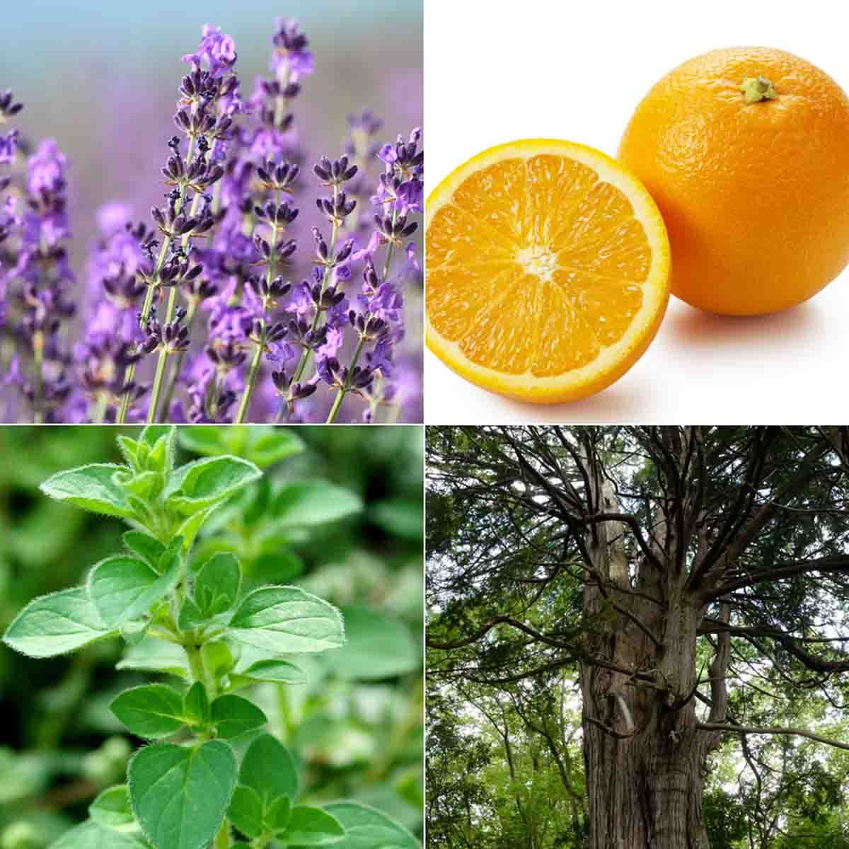 スイートオレンジ精油、マンダリン精油、ラベンダー精油、ヒノキ精油、マジョラムスイート精油